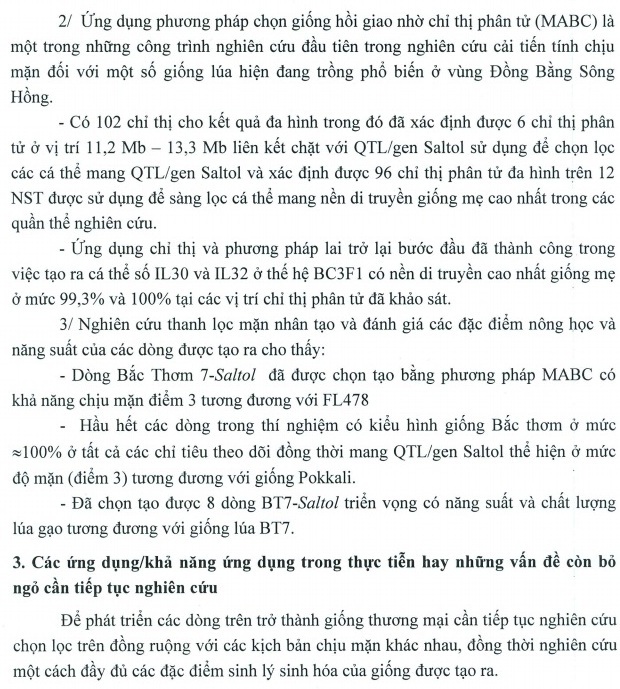 Nghiên cứu ứng dụng chỉ thị phân tử trong chọn tạo giống lúa Bắc Thơm 7 chịu mặn (TS. Đồng Thị Kim Cúc)